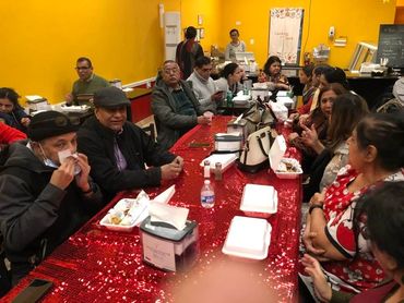 Hot, culturally appropriate meals are served twice a month in a welcoming banquet hall so seniors can share food, language, and companionship without worrying about cooking.